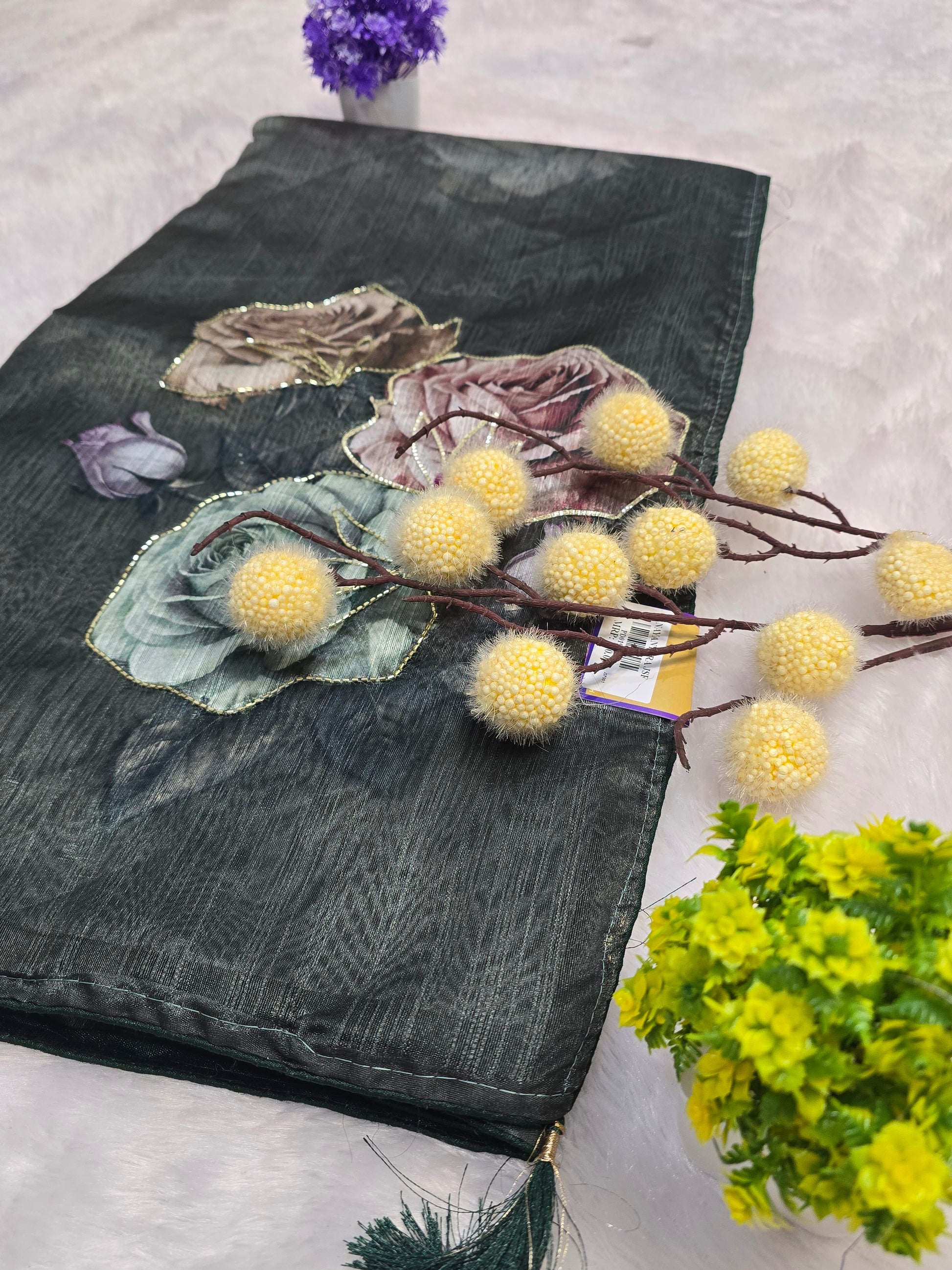 Green Floral Handcrafted Saree