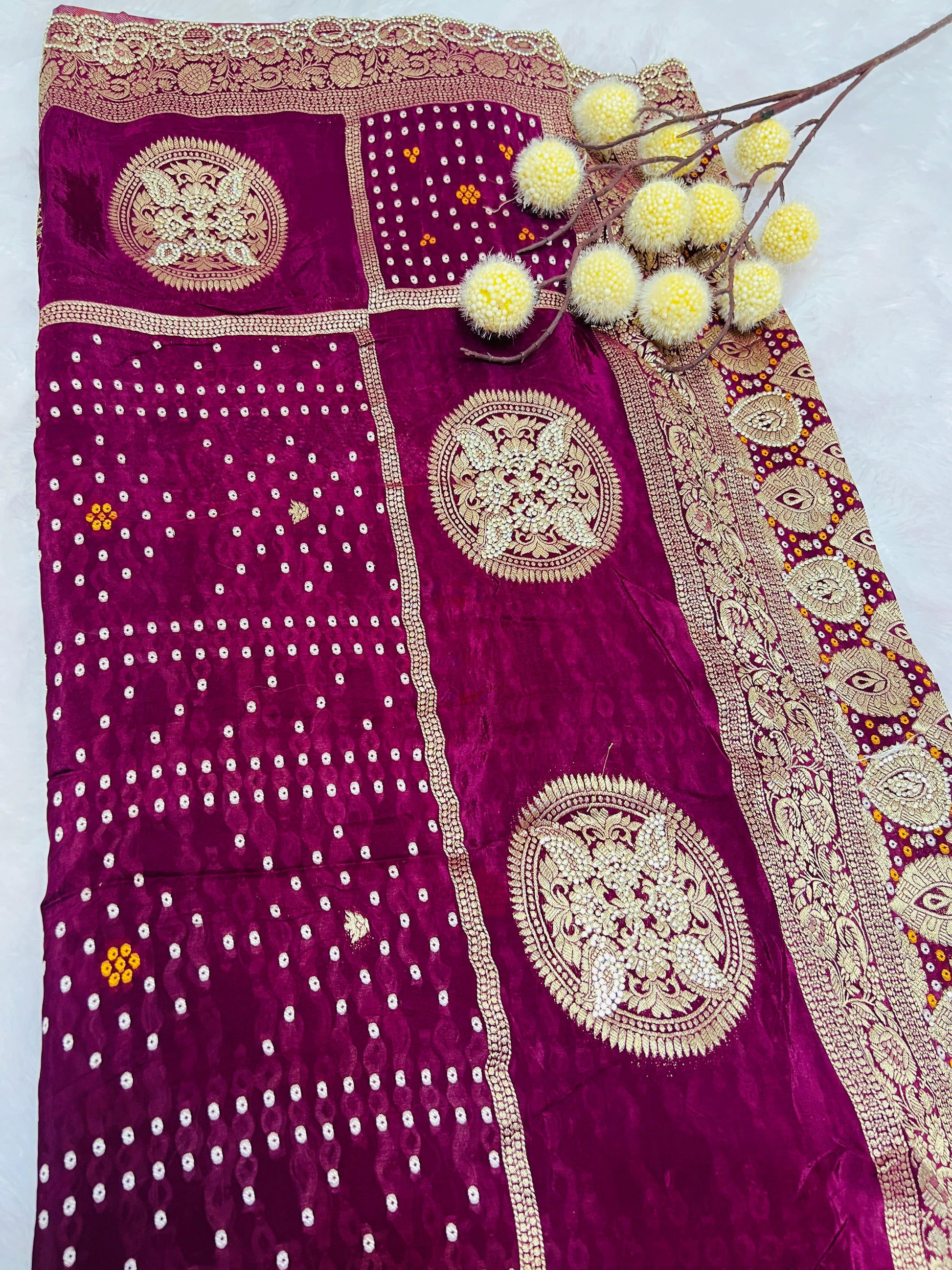 Bandhani Gaji Silk Dupatta with Embroidery & Tassels