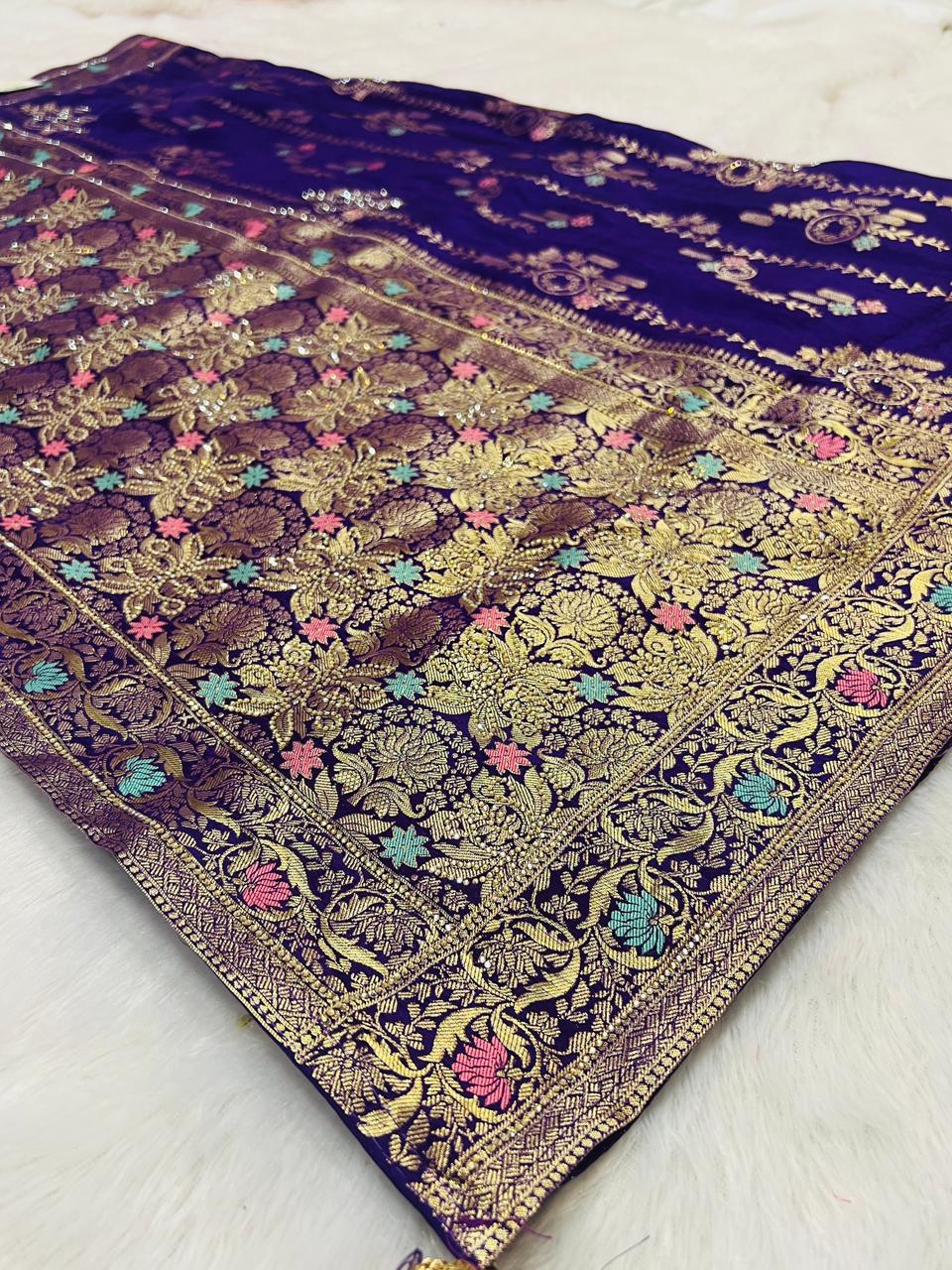 Royal Blue Banarasi Meenakari Saree