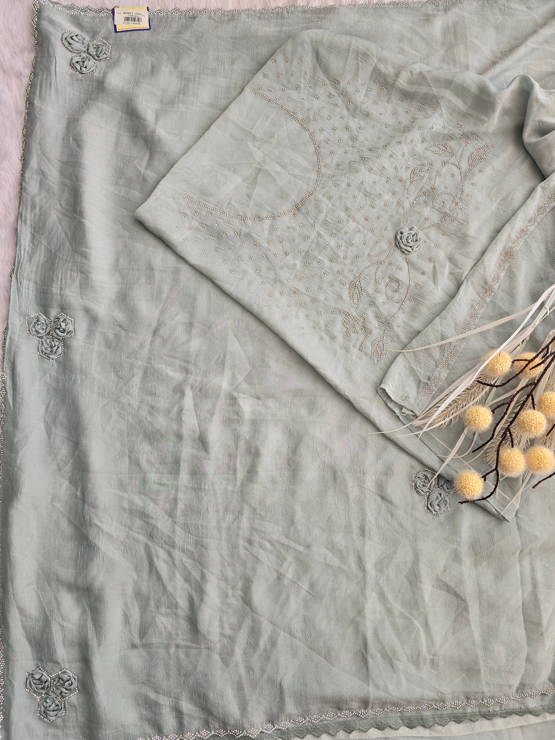 Silver-Grey Crushed Organza Saree with 3D Fabric
